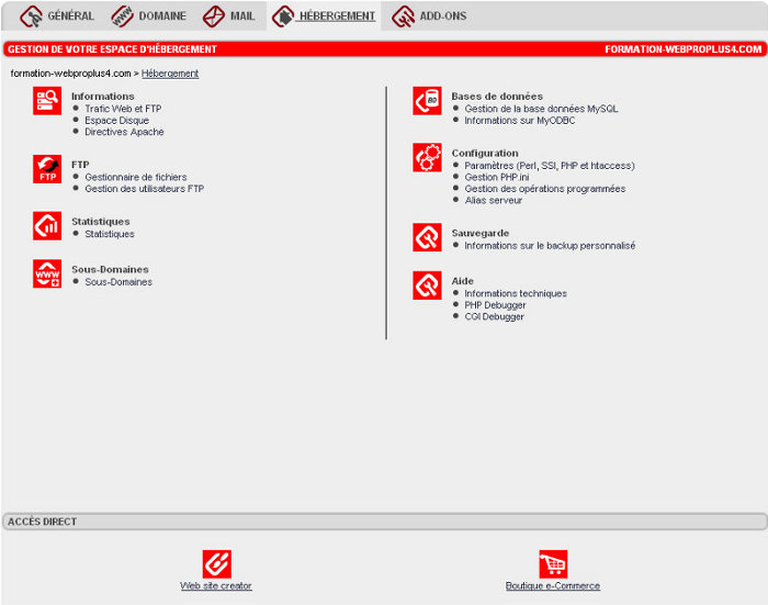 Enfin, dans la section Configuration, il ne reste plus qu’à cliquer sur le lien Gestion de la version de PHP